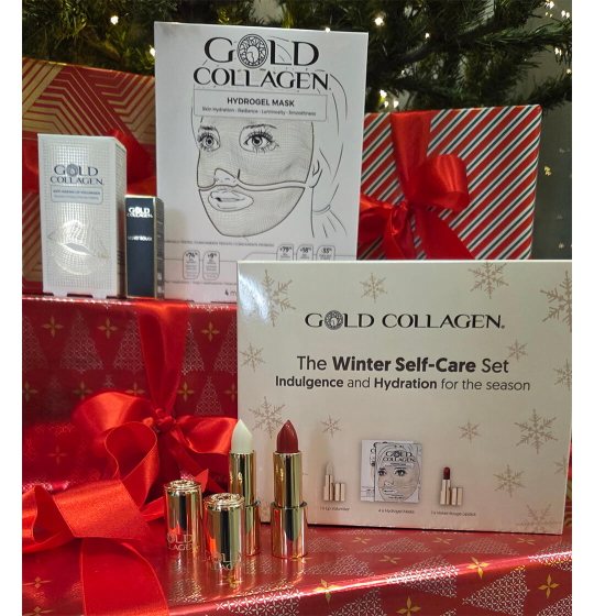 Gold Collagen riboto leidimo veido priežiūros rinkinys. Balzamas + veido kaukės + lūpdažis
